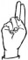 На ћирилици написано ДИМИТРИЈЕ ГУЖВИЋ састоји се из 15 слова [?]. Исписано ћириличном једноручном азбуком за глувонеме: